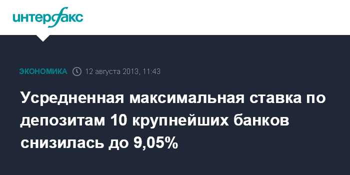 Усредненная максимальная ставка по депозитам 10 крупнейших банков снизилась до 9,05%