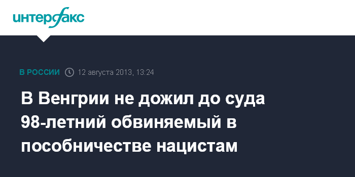 В Венгрии не дожил до суда 98-летний обвиняемый в пособничестве нацистам
