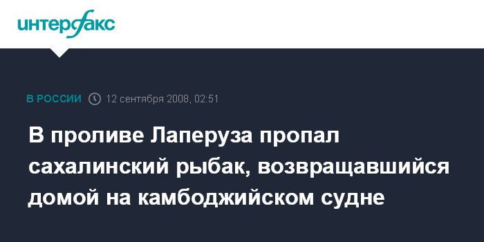 Южно-Сахалинск. 12 сентября. ИНТЕРФАКС-ДАЛЬНИЙ ВОСТОК - Житель Сахалина пропал в четверг утром с борта теплохода "Ковас" под флагом Камбоджи во время его следования из японского порта Отару в сахалинский порт Корсаков.