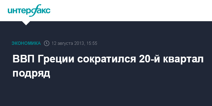 12 августа. FINMARKET.RU - В апреле-июне 2013 года экономика Греции сократилась 20-й квартал подряд.