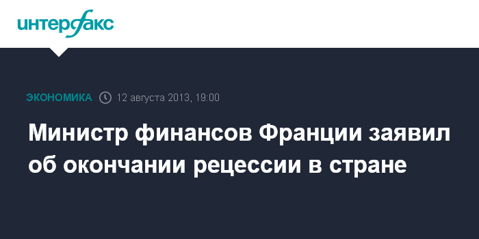 Париж. 12 августа. INTERFAX.RU - Экономика Франции вышла из рецессии, заявил министр финансов страны Пьер Московиси в интервью корсиканской газете Corse Matin.