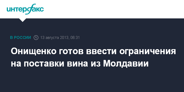 Москва. 13 августа. ИНТЕРФАКС - Российская санитарная служба подтверждает планы ввести ограничения на поставки вина из Молдавии из-за выявленных нарушений.