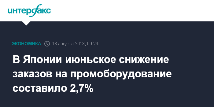 В Японии июньское снижение заказов на промоборудование составило 2,7%