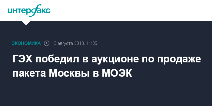 ГЭХ победил в аукционе по продаже пакета Москвы в МОЭК