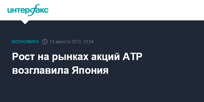 13 августа. FINMARKET.RU - Во вторник фондовые индексы Азиатско-Тихоокеанского региона (АТР) завершили ростом четвертую сессию подряд, чего не наблюдалось уже шесть недель. Наиболее сильный подъем продемонстрировал японский рынок благодаря оказавшимся лучше ожиданий статданным, ослаблению иены и сообщениям, что правительство Японии рассматривает возможность сокращения налогов на прибыль корпораций.