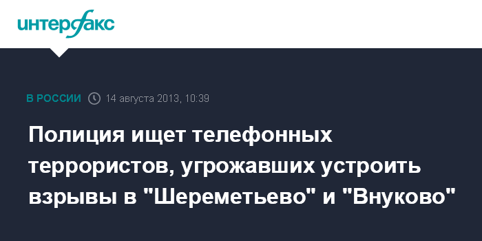 Москва. 14 августа. INTERFAX.RU - Полиция устанавливает личности хулиганов, сообщивших ложную информацию о заложенных бомбах в двух столичных аэропортах, сообщили "Интерфаксу" в среду в пресс-службе управления на транспорте МВД по ЦФО.