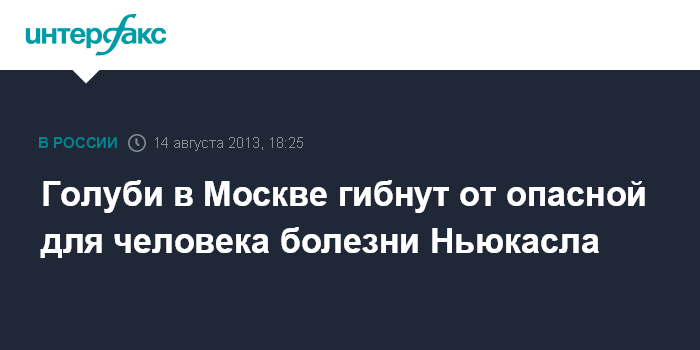 Москва. 14 августа. INTERFAX.RU - Голуби в Москве гибнут от опасной для человека болезни Ньюкасла, сообщил "Интерфаксу" официальный представитель Россельхознадзора Алексей Алексеенко.