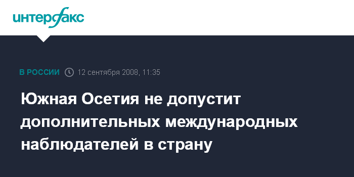 Москва. 12 сентября. INTERFAX.RU - Президент Южной Осетии Эдуард Кокойты заявляет о недопустимости нахождения дополнительных международных наблюдателей на территории республики.