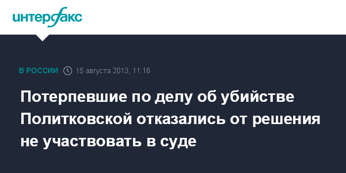 Москва. 15 августа. INTERFAX.RU - Потерпевшие по делу об убийстве журналистки Анны Политковской решили принять участие в процессе, сообщила адвокат потерпевшей стороны Анна Ставицкая.