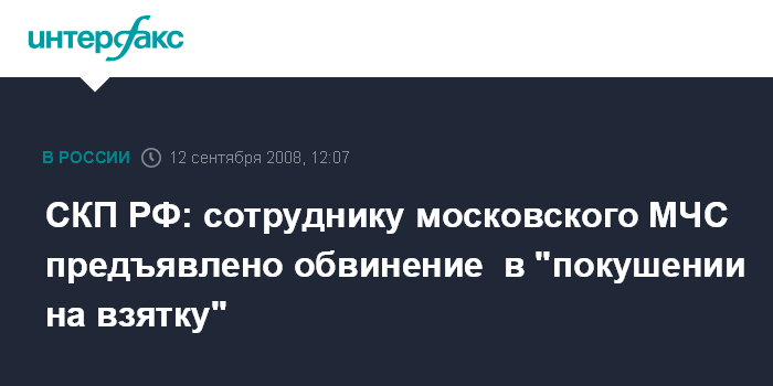 СКП РФ: сотруднику московского МЧС предъявлено обвинение в "покушении на взятку"