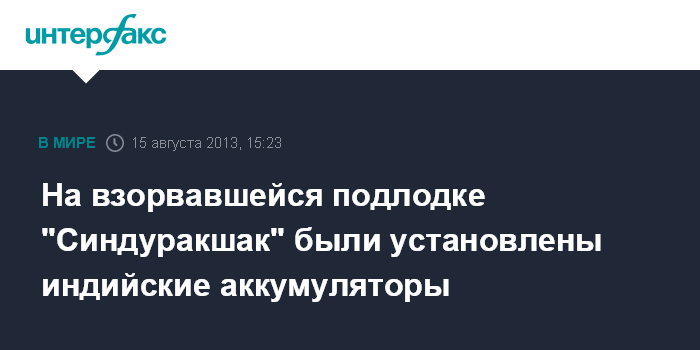 На взорвавшейся подлодке "Синдуракшак" были установлены индийские аккумуляторы