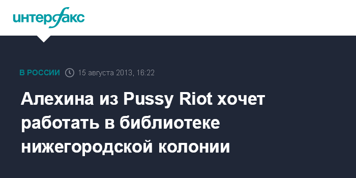 Нижний Новгород. 15 августа. INTERFAX.RU - Осужденная участница панк-группы Pussy Riot Мария Алехина собирается заниматься в исправительной колонии в Нижнем Новгороде интеллектуальным трудом, сообщила ее адвокат Ирина Хрунова.