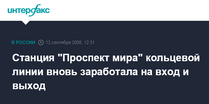 Москва. 12 сентября. INTERFAX.RU - Открылся вестибюль станции метро "Проспект Мира" кольцевой линии, где в сегодня утром произошло обрушение части фасада жилого дома, сообщили "Интерфаксу" в пресс-службе Московского метрополитена.