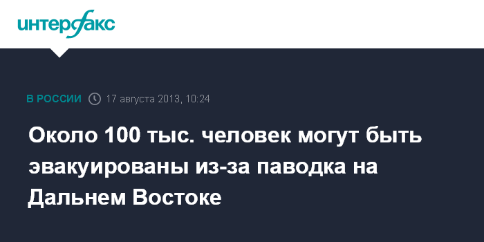 Около 100 тыс. человек могут быть эвакуированы из-за паводка на Дальнем Востоке