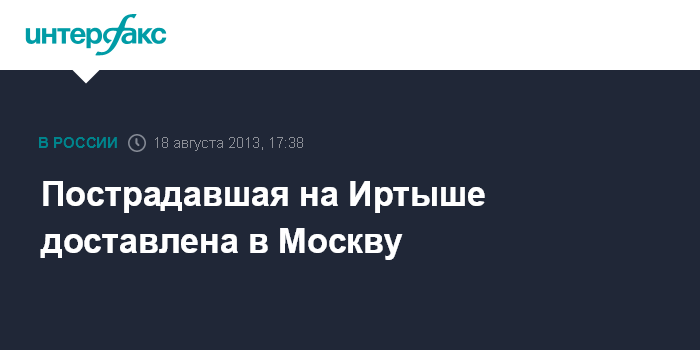 Омск. 18 августа. INTERFAX.RU - Самолет МЧС РФ, на борту которого находится женщина, пострадавшая при столкновении теплохода с баржей на Иртыше, приземлился в подмосковном аэропорту Раменское, сообщили в воскресенье в МЧС РФ. Как сообщалось, пострадавшей будут оказывать помощь специалисты НИИ хирургии имени Вишневского.