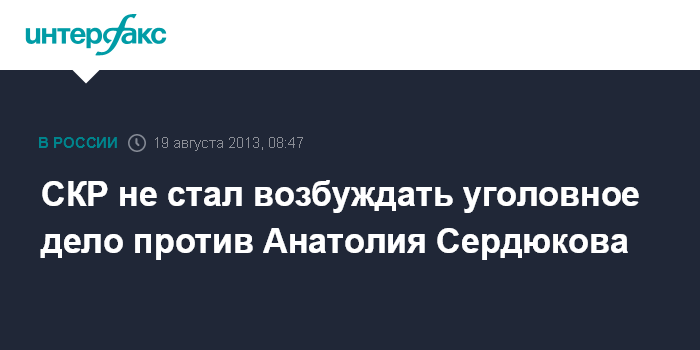 СКР не стал возбуждать уголовное дело против Анатолия Сердюкова