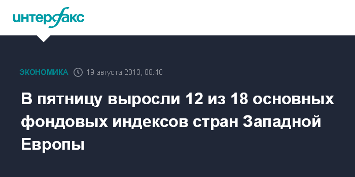 В пятницу выросли 12 из 18 основных фондовых индексов стран Западной Европы