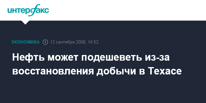 Москва. 12 сентября. INTERFAX.RU - Стоимость нефти может подешеветь на следующей неделе из-за восстановления добычи в Техасе, прерванной ураганом "Айк", сообщило агентство Bloomberg.