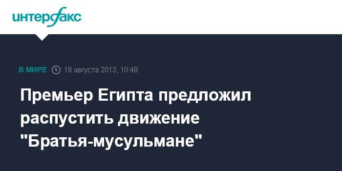 Каир. 19 августа. INTERFAX.RU - Временно исполняющий обязанности премьер-министра Египта Хазем Беблауи в пятницу выступил с предложением об официальном роспуске исламистского движения "Братья-мусульмане", сообщают СМИ.