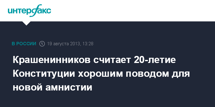 Крашенинников считает 20-летие Конституции хорошим поводом для новой амнистии