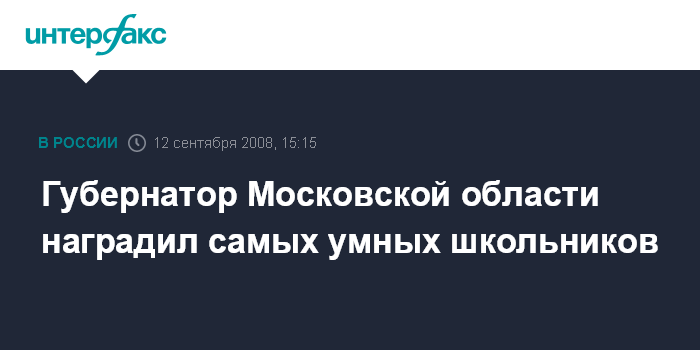 Москва. 12 сентября. INTERFAX.RU - Губернатор Московской области Борис Громов наградил 66 школьников - призеров российских и международных олимпиад, сообщили в пятницу "Интерфаксу" в пресс-службе министерства образования региона.