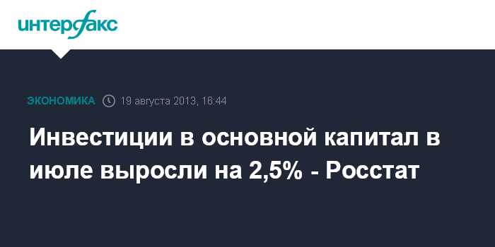 Инвестиции в основной капитал в июле выросли на 2,5% - Росстат
