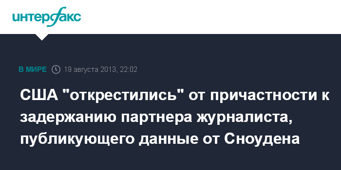 Накануне власти Великобритании задержали в столичном международном аэропорту "Хитроу" бразильца Давида Миранду, который состоит в гражданском союзе с корреспондентом британской газеты Guardian Гленном Гринвальдом, занимающимся публикацией информации от бывшего сотрудника АНБ и ЦРУ Эдварда Сноудена.