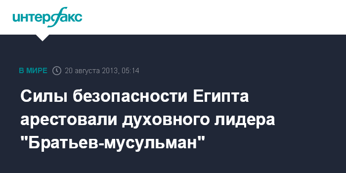Каир. 20 августа. ИНТЕРФАКС - Духовный лидер исламистского движения "Братья-мусульмане" Мохаммед Бадия арестован в Каире силами безопасности страны в ночь на вторник, сообщили местные СМИ со ссылками на официальные источники.