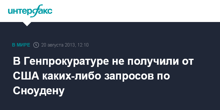 "По Сноудену никакого запроса мы не получали от США. Они сообщили лишь, что лишили его американского паспорта", - сказал журналистам во вторник в Москве один из руководителей Генпрокуратуры РФ.