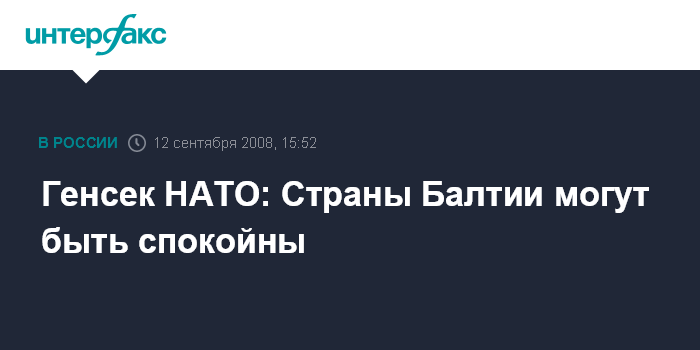 Москва. 12 сентября. INTERFAX.RU - Все члены НАТО, в том числе и страны Балтии, могут не бояться России и быть совершенно спокойны за свою безопасность, заявил генеральный секретарь НАТО Яап де Хооп Схеффер.