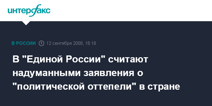 "Говорить об оттепели в России, по крайней мере, смешно. Россия - это демократическое государство, в котором присутствуют все виды политических свобод, в котором действует много партий", - подчеркнул представитель руководства "Единой России".