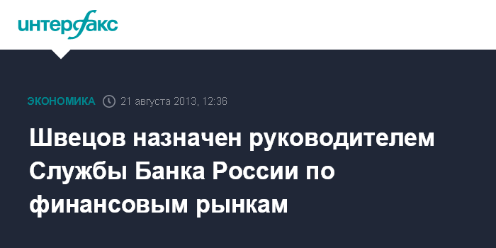 Швецов назначен руководителем Службы Банка России по финансовым рынкам
