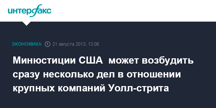Минюстиции США может возбудить сразу несколько дел в отношении крупных компаний Уолл-стрита