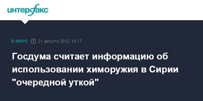 Госдума считает информацию об использовании химоружия в Сирии "очередной уткой"