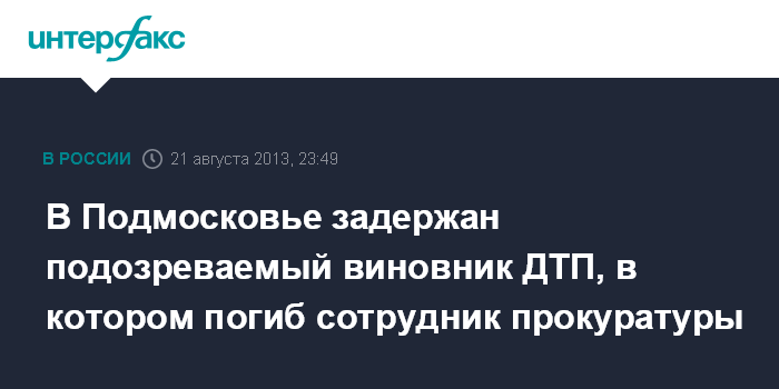 Москва. 21 августа. INTERFAX.RU - Водитель, подозреваемый в совершении ДТП, в котором погибли два человека, включая сотрудника московской прокуратуры, задержан.