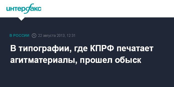 Москва. 22 августа. INTERFAX.RU - Член президиума ЦК КПРФ, руководитель фракции коммунистов в Мосгордуме Андрей Клычков сообщил, что полицейские проводят мероприятия в типографии, где Компартия изготавливает свою печатную продукцию.