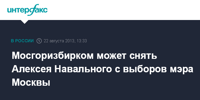 Москва. 22 августа. INTERFAX.RU - Члены Мосгоризбиркома в ближайшее время рассмотрят вопрос об отмене регистрации кандидата на должность мэра Москвы Алексея Навального, выдвинутого партией "РПР-Парнас".