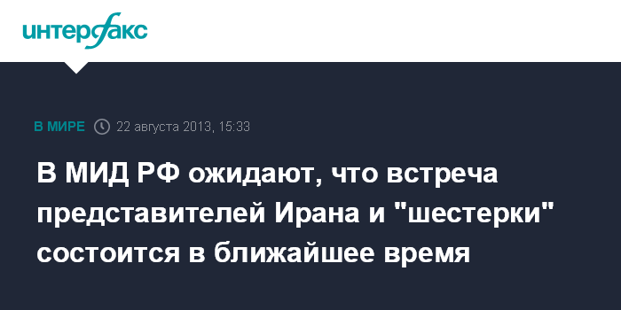 Москва. 22 августа. INTERFAX.RU - МИД РФ рассчитывает, что очередной раунд переговоров "шестерки" международных посредников с представителями Ирана состоится в самое ближайшее время, заявил официальный представитель МИД РФ Александр Лукашевич.