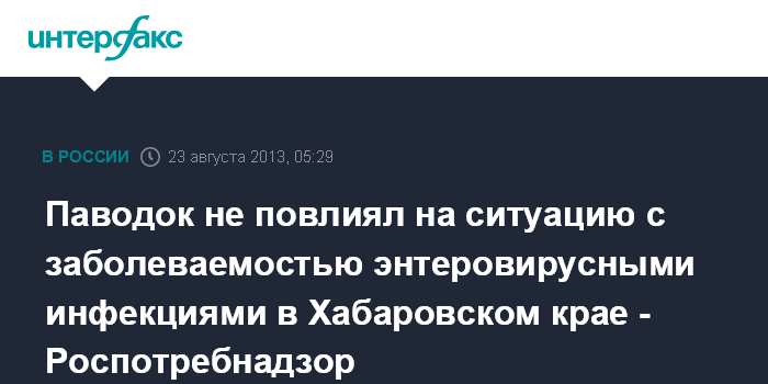 Паводок не повлиял на ситуацию с заболеваемостью энтеровирусными инфекциями в Хабаровском крае - Роспотребнадзор