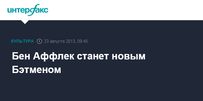 Москва. 23 августа. INTERFAX.RU - Компания Warner Bros в пятницу утром сообщила, что новым Бэтменом станет голливудский актер и режиссер Бен Аффлек. Месяц назад студия объявила, что новый фильм, выход которого намечен на 17 июля 2015г, станет сиквелом истории "Человек из стали" режиссера Зака Снайдера". В новом эпизоде Супермэн встретится лицом к лицу с ветераном супергеройского движения Брюсом Уэйном, он же Бэтмен.