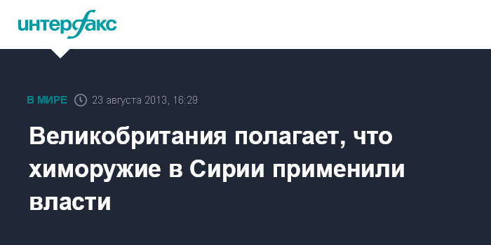 Лондон. 23 августа. INTERFAX.RU - Британские власти считают, что за предполагаемым использованием химического оружия близ Дамаска стоит сирийский режим, заявил в пятницу глава МИД Великобритании Уильям Хейг.