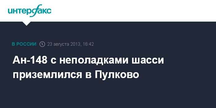 Москва. 23 августа. INTERFAX.RU - Самолет авиакомпании "Россия" Ан-148, потерявший при вылете из Минвод шину передней стойки шасси, благополучно приземлился в "Пулково", сообщили "Интерфаксу" источник в службах аэропорта.