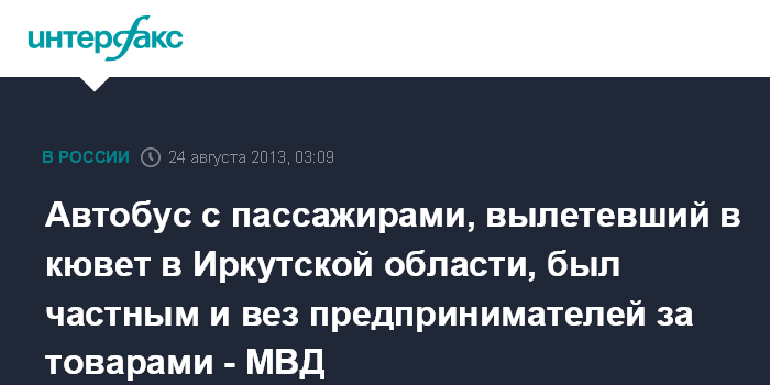 Иркутск. 24 августа. ИНТЕРФАКС-СИБИРЬ - Автобус с пассажирами, вылетевший в кювет на 61 км федеральной трассы М-55 в Иркутской области в субботу, не был рейсовым, а выполнял частный заказ, сообщил агентству "Интерфакс-Сибирь" начальник пресс-службы регионального управления МВД Герман Струглин.