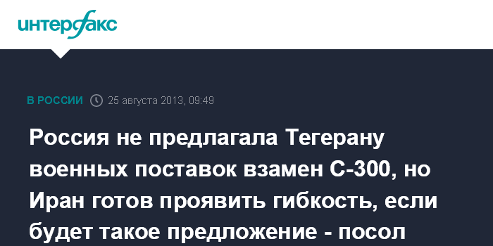 Россия не предлагала Тегерану военных поставок взамен С-300, но Иран готов проявить гибкость, если будет такое предложение - посол