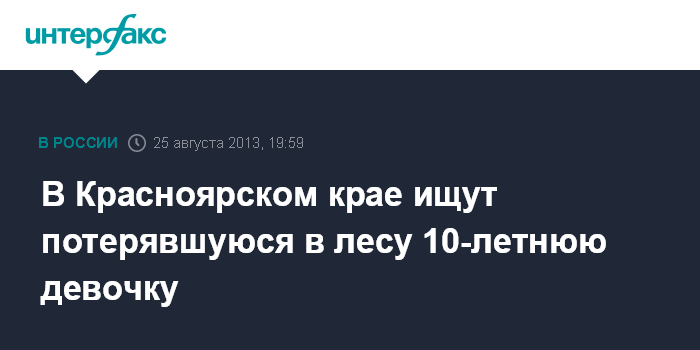 Красноярск. 25 августа. ИНТЕРФАКС-СИБИРЬ - Полицейские, спасатели и волонтеры проводят операцию по поиску 10-летней девочки, которая потерялась в лесу в Боготольском районе Красноярского края, сообщает в воскресенье пресс-служба краевого ГУ МВД.