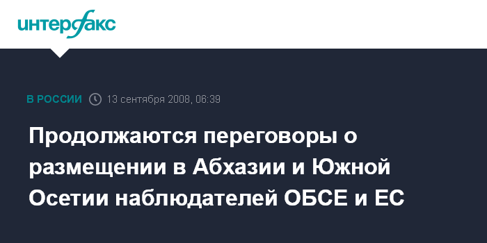 Продолжаются переговоры о размещении в Абхазии и Южной Осетии наблюдателей ОБСЕ и ЕС
