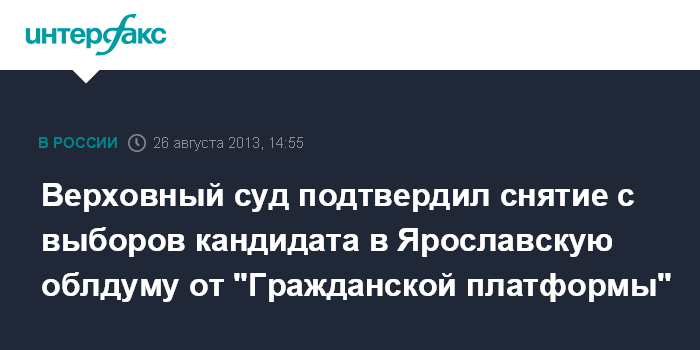 Верховный суд подтвердил снятие с выборов кандидата в Ярославскую облдуму от "Гражданской платформы"