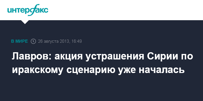 Москва. 26 августа. INTERFAX.RU - В отношении Сирии происходит акция устрашения, аналогичная той, которая имела место в отношении Ирака 10 лет назад, но прогнозировать развитие ситуации пока невозможно, заявил глава МИД РФ Сергей Лавров.