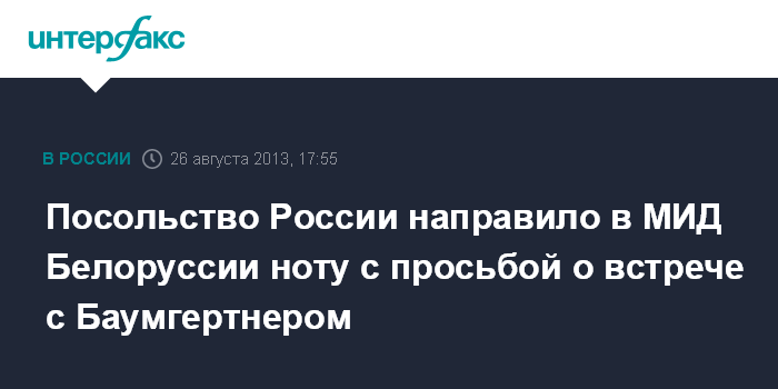 Посольство России направило в МИД Белоруссии ноту с просьбой о встрече с Баумгертнером