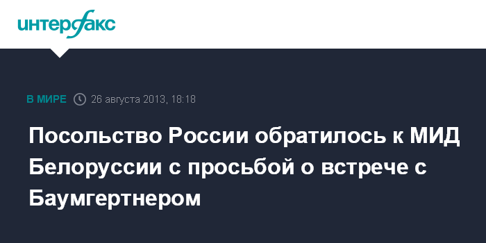 При этом, как сообщил агентству "Интерфакс" советник российского посольства в Минске Владимир Марчуков, официальных сообщений о факте задержания Баумгертнера ни из МИД Беларуси, ни из Следственного комитета пока не поступало.